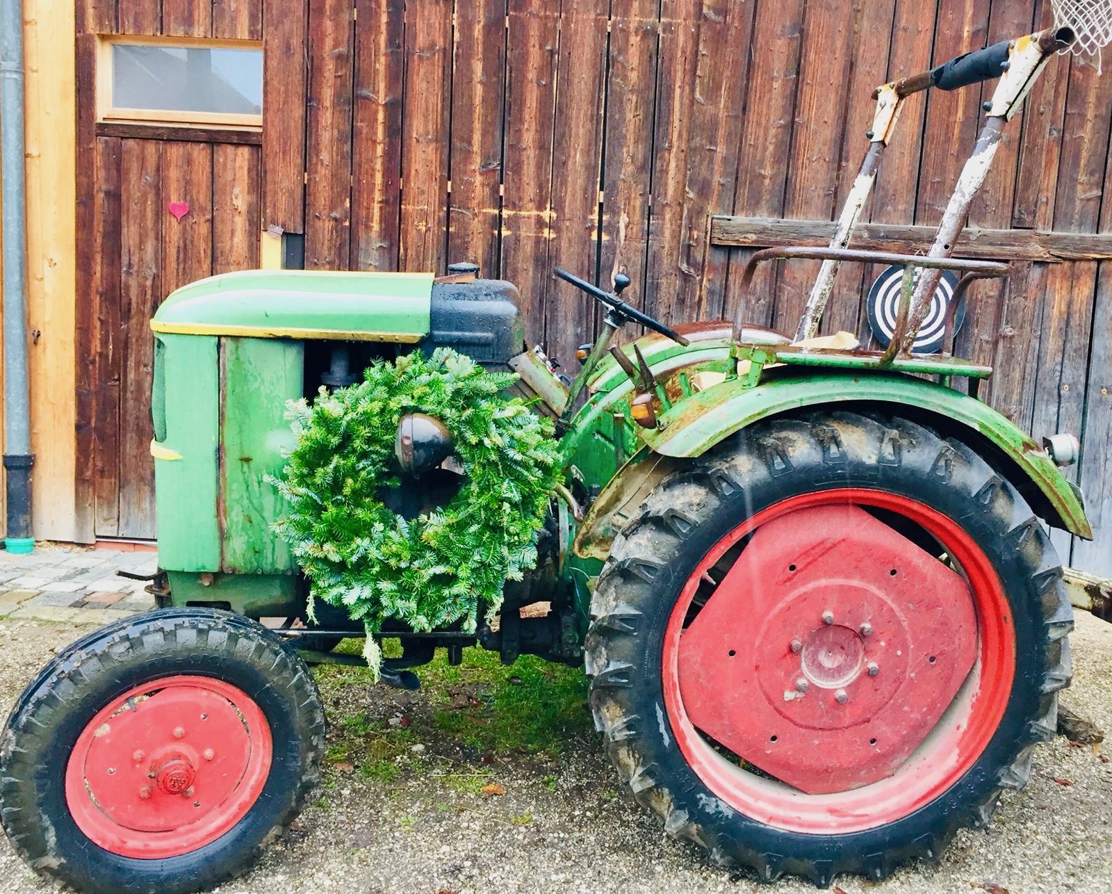 Besonderheiten: Weltweit einer der wenigen Traktoren, der schon einmal in einem Gedicht besungen wurde. Als wir nämlich auf dem Assenhauser Hof vorbeikamen, hatte der Mair Steffe zufällig ein paar Tage vorher ein Lobgedicht auf seinen Lieblingstraktor geschrieben, das er uns sogleich – sozusagen als Adventsgeschichte – vorgelesen hat (Bitte auf den Pfeil klicken): “Es ist das Leben”. Der Traktor wird heute noch im alltäglichen Betrieb eingesetzt.