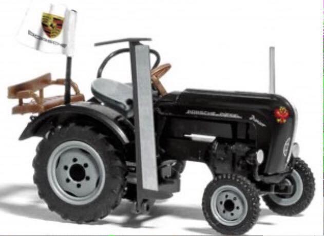 laut Aussage des Besitzers um den weltweit einzigen schwarzen Traktor dieser Marke. Denn normalerweise wurden – bis auf eine schmale braune Tranche, die einmal nach Brasilien exportiert wurde – alle Zugfahrzeuge von Porsche unterschiedslos in rot ausgeliefert. Nachdem Georg Hamann das “Sakrileg” begangen hatte, seinen Trakor nicht nur mit Holzlenkrad und Sportauspuff zu versehen, sondern ihn auch noch bei der Restauration schwarz lackieren zu lassen, machte das Fahrzeug zusätzlich eine Karriere in der Spielwarenindustrie. Sie reproduzierte sein schwarzes Modell, das DER Hingucker bei jedem Porsche-Oldtimer-Treffen ist, als Spielzeugmodell.