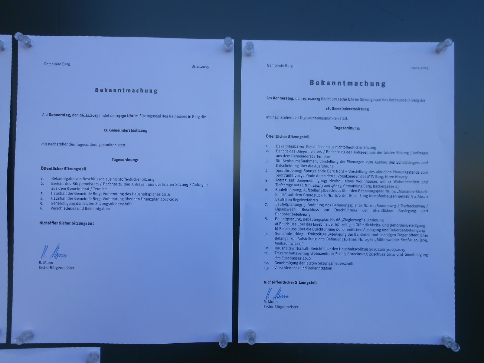 Hier sehen Sie die Bekanntmachungen, die in den gemeindlichen Schaukästen aushängen – Zum Vergrößern bitte anklicken.
