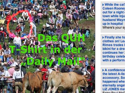 Über diesen Umweg fand auch das modische Acescoire der Stunde, das QUH-T-Shirt, seinen Weg um die Welt: