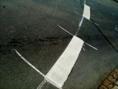 Fortschritte macht hingegen die künstlerische Gestaltung des Kreisels: Am Boden finden sich erste zurückhaltende farbliche Notizen, die die Befahrer des Kreisels auf ihre Geworfenheit im Straßenverkehr zurückverweisen oder (mit einer kühnen gelben Note am Rande) an das Lebendige im Kreisel und das Kreisende im Leben erinnen.