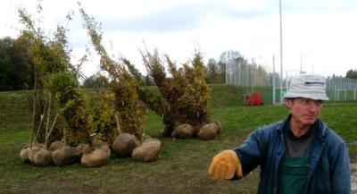 Währenddessen arbeitet der MTV am Boden in Eigenleistung daran, den Trainingsplatz tatsächlich in die Landschaft einzupassen. Gestern kamen eine erste Lieferung der über hundert von Berger Bürgern (nein, der Herr von der Maxhöhe war nicht dabei) gespendeten heimischen Bäume an, die die Fa. Kalinke morgen und am nächsten Freitag auf eigene Kosten um den Trainingsplatz herum pflanzen wird. Platzwart Werner Ullrich zeigte schon mal an, wohin mit all den Bäumen: