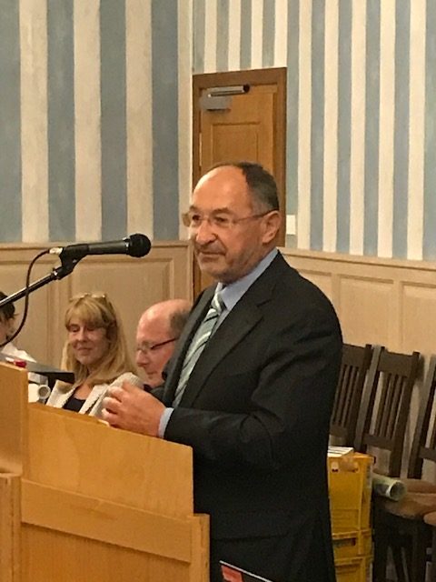 Er freut sich über die neuen Buslinien und berichtet über Projekte, die hier eher wenig interessieren: Die FOS, das Gymnasium in Herrsching, die Zusammenarbeit mit der Geburtshilfeklinik in Wolfratshausen.