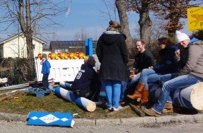 Im Vorlauf zu der großen Feier (zu dem die Berger Burschenschaft übrigens – wie für alle ihre Feste – keine Zuwendungen von der Gemeinde beantragt hat: man finanziert sich hierzulande natürlich selbst!) wird am 17. März der Maibaum ins Dorf gespielt. Am 15.4. werden dann die Teile des alten Maibaums öffentlich versteigert (> Finanzierung).