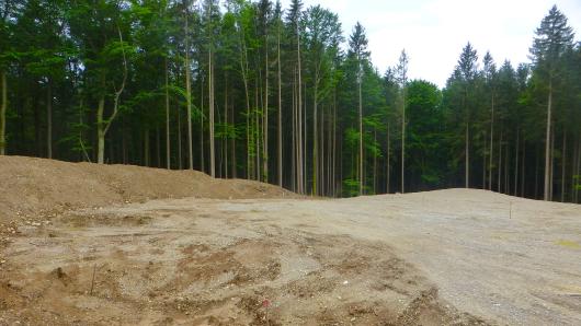 Im Wald ist keinerlei Mutterboden mehr zu sehn und nirgendwo ist etwas davon gelagert.