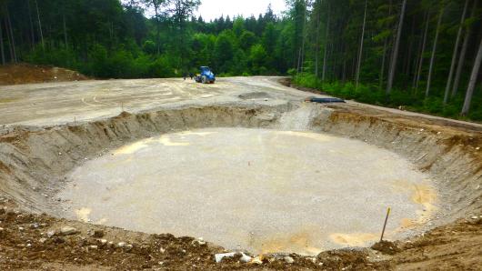 Der Bauplatz oben auf dem Hügel ist hingegen schon fertig: Der Platz, wo der schwere Baukran stehen wird, muss um einige Meter aufgeschüttet werden.