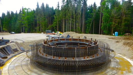 Am allerweitesten sind die Arbeiten am Windrad Nummer 2, das neben der großen Kiesgrube liegt. Hier ist der Untergrund schon ausgegossen, die Armierung ist so gut wie fertig. Erstaunliches ist hier in der kurzen Bauzeit passiert.