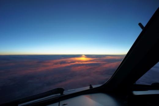 Sonnenaufgang über dem Atlantik an Bord einer Boing 737 (Photo: Dirk König)