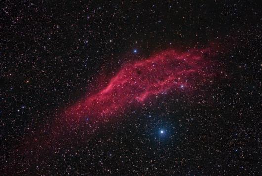 Manchmal können Astronomen auch etwas merkwürdig sein. So gibt es unter ihnen einen Streit darüber, ob unser heutiger Gast NGC 1499 – mit volkstümlichem Namen und wegen der Form auch California Nebel genannt – mit dem bloßen Auge sichtbar ist oder nicht. Beschrieben wurde der Nebel, der sich innerhalb unseres gestrigen Sternbildes befindet, 1886 als von seinem Entdecker als “ziemlich schwach aber relativ groß”; zu sehen sei er, indem man etwas neben seine Position blickt, worauf der California Nebel dann schwach aufblitzt. Ein unter “Deep Sky” Beobachtern gern benutzter Trick des “indirekten Sehens”. Kein Problem ist es, NGC 1488 von der Christian Jutz Volkssternwarte Berg aus zu beobachten.