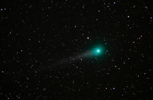 Gestatten: Komet C/2007 N3, nach dem Observatorium, in dem er zuerst gesichtet wurde auch Lulin genannt. Der “Grüne Komet” hat einen Haupt- und einen Gegenschweif und kommt als nicht-periodischer Komet vorbei, wann es ihm paßt. Der Komet ist giftig: seine zum heutigen Nikolaus komplementäre Farbe bekommt er durch Cyanid. Photo: Christian Jutz Volkssternwarte Berg.