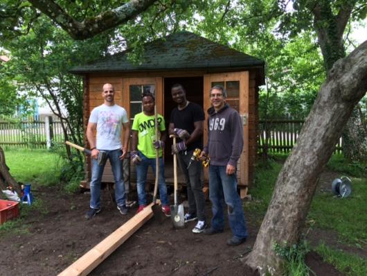 Von der kommenden Flüchtlingskrise war da noch nicht recht viel zu spüren: Es war uns trotzdem eine Meldung wert, dass die Handvoll Flüchtlinge in Berg versuchte, sich nützlich zum machen und beim Bau eines Gartenhauses in der Montessori-Schule half.