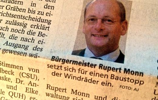 Grund: die Gemeinde ist nur noch Teilhaber an den Anlagen, die bereits der “Bürgerwind Berg GmbH” verkauft wurden. Ein früheres Begehren, das den Bau vielleicht wirklich hätte hinauszögern können, war Monate zuvor an der Anzahl der nötigen Stimmen gescheitert.