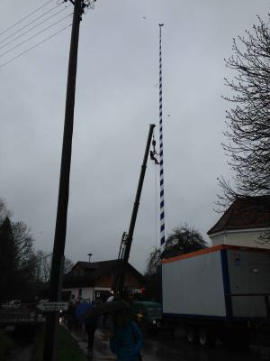 Der Baum steht! Wir freuen uns auf die Maifeier bei hoffentlich besserem Wetter.