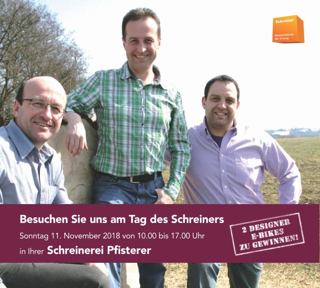 Eine Veranstaltung an diesem Sonntag gibt es noch, die nichts mit K zu tun hat: Der Tag des Schreiners bei der Schreinerei Pfisterer in Farchach – wie immer ist eine sehr volle Werkstatt zu erwarten, und es sind auch andere regionale Hersteller beteiligt. (Wir haben nach unserem Besuch heute noch Bilder eingefügt!)
