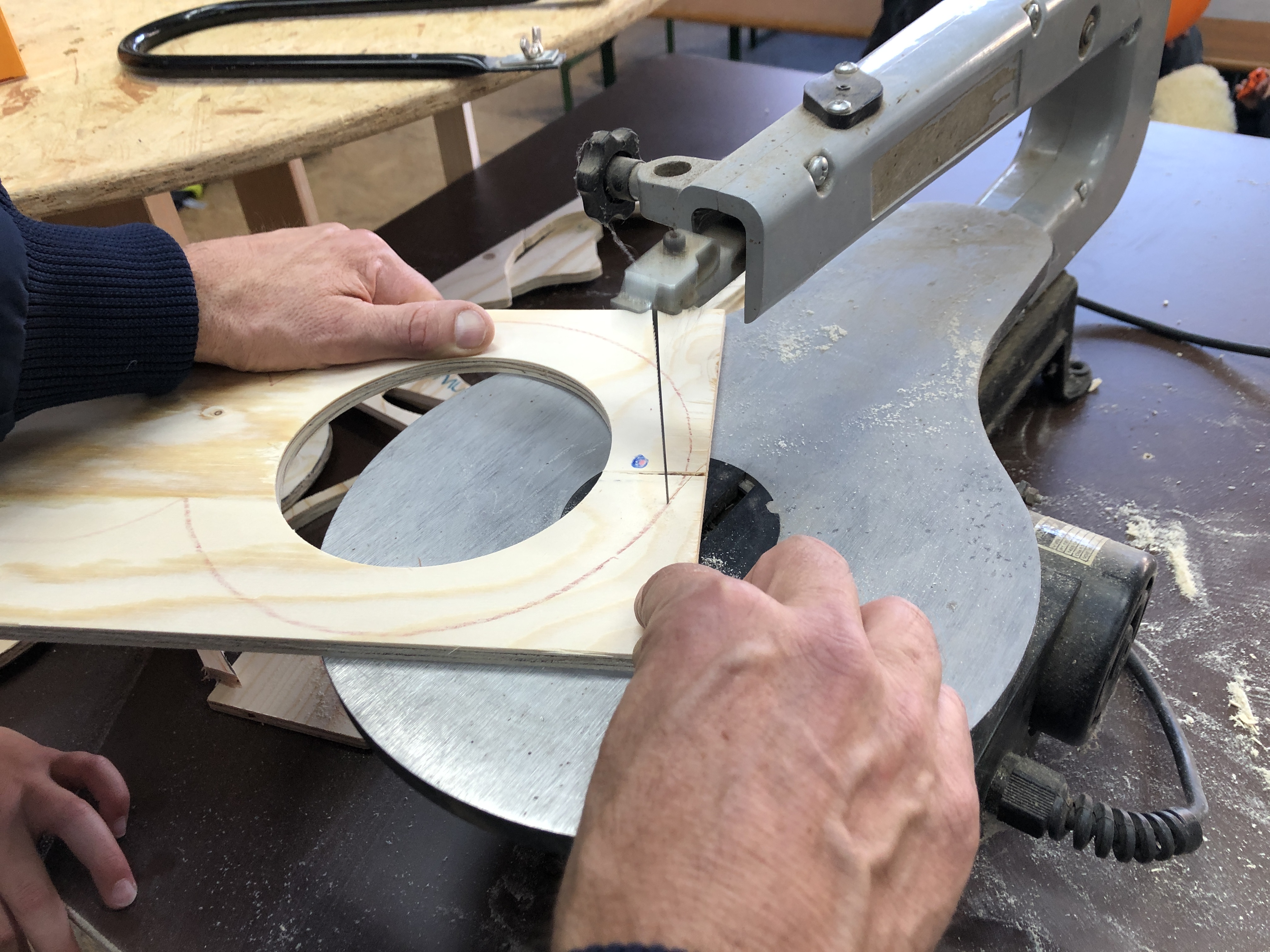 Den ganzen Tag können Besucher und Kinder unter Anleitung und aus vorgefertigten Vorlagen verschiedene Kleingeräte für sich schreinern.