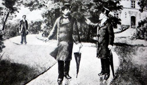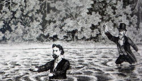 13. Juni; 18 Uhr 35: “Es darf kein Pfleger mitgehen.” Dr. Gudden bedeutet dem Pfleger Mauder bei seinem Spaziergang mit dem König, zurückzubleiben. Das Gegenteil war vorgeschrieben. Der Arzt geht links vom König.