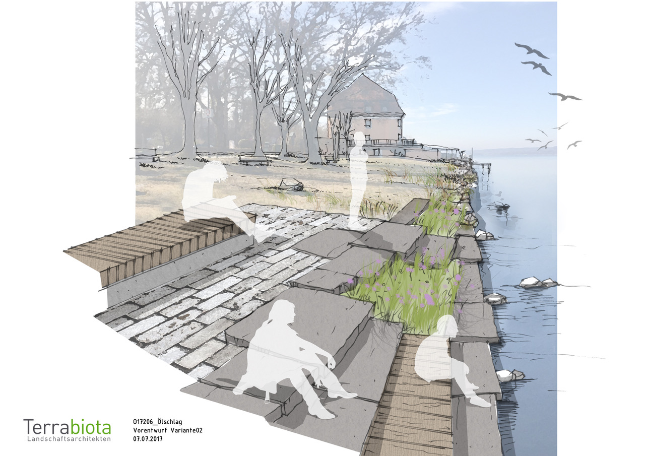 für ein so zentral gelegenes und nicht allzu großes Grundstück ist ein Badeplatz sicherlich nicht die beste aller Nutzungen, zumal keine Toiletten vorgesehen sind. Außerdem führt ein Tagwasserkanal und ein Überlauf direkt dort in den See – genau dazwischen soll der “Seeabstieg” kommen. Am Schwimmen hindern wird Sie niemand.