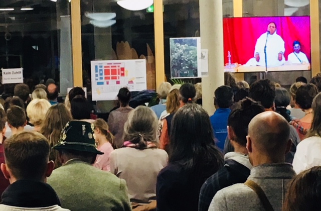 Dienstag, Mittwoch 30 & 31.10.: Nachdem die Woche bislang der Wirtschaft und der Spiritualität gewidmet war wurde am Freitag, dem 2.11., dann einfach nur wertfrei gefeiert. Zum zweiten Mal wurde in den Marstall zum “Stallfest” geladen …, wo dann ganz frei von wirtschaftlichen Notwendigkeiten und geistigen Höhenflügen einfach nur gefeiert und getanzt werden durfte … von der Dauer der Veranstaltung konnte das “Stallfest” mit Amma durchaus mithalten. Peace and Party in Berg: