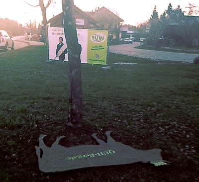 Der dritte Streich. Allerdings ist Besserung in Sicht: Immerhin wurde die QUH – anders als die QUH-Zeitungskästen – nicht noch zertreten.