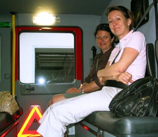Bürgermeister Monn himself gab uns beiden Elken netterweise eine Anfängerführung um das Fahrzeug. Fassungslos erfuhren wir, dass die Feuerwehr bei großen Versammlungen im Notfall Lachgas einsetzt. Er demonstrierte uns auch gleich die Vorrichtung dafür. Und was war? Reingelegt hat er uns, der Rupert! Das war schnödes Löschpulver!