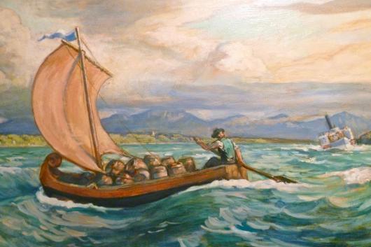 … sein Bruder Colombo oft als Chronist des Lebens am Starnberger See. “Das Bierschiff” heißt eines seiner Gemälde, das heute noch in der Gaststube des Hotels am See in Ammerland hängt und ein altes Wahrzeichen des Sees darstellt: Dieses Bierschiff verkehrte jahrzehntelang zwischen den Ufern des Starnberger Sees und brachte die Fässer aus der Wendland’schen Brauerei in Bernried zu den Kunden.