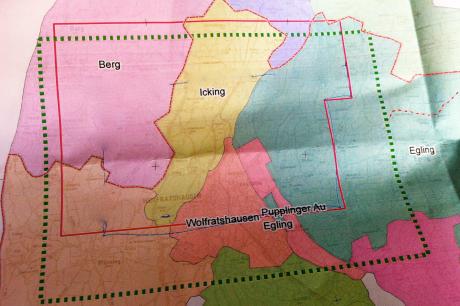 Die Geothermiefirma ist nach bisherigen Erkenntnissen vor allem an dem Areal im Süden ihres “Claims” (in der Karte rot umrandet) interessiert. Da Fernwärmeprojekte selbst im Ballungsraum Wolfratshausen schwer zu realisieren sind, setzt man hauptsächlich auf die ökologische, CO2-freie Stromgewinnung (Wirkungsgrad ca 7%). Die Berger Landwirte hätten die Messungen, denen sie – wie allgemein der Geothermie – überwiegend positiv gegenüberstanden, gerne auf die vegetationsfreie Zeit ab November geschoben, was allerdings unmöglich ist: Die weltweit einzigartigen Messfahrzeuge sind bereits für September gebucht. Die Kabel werden über die Äcker gelegt, die Landwirte angeblich großzügig entschädigt. Am Ende erhob sich Unmut allein in Richtung des Bürgermeisteramts, das an dem Projekt – anders als an der Windenergie – nicht im Geringsten interessiert ist und vor allem die betroffenen Berger Bürger in völliger Unkenntnis über die Entwicklung ließ. Selbst das Wort “Sauerei” fiel.