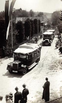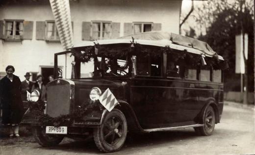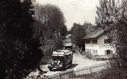 Ganz genau läßt sich das Datum nicht mehr bestimmen. Es wird aber ungefähr im Jahr 1926 gewesen sein, als in Berg die erste Omnibuslinie nach München und Ambach eröffnet wurde. Die Kinder hatten schulfrei bekommen und säumten mit Fähnchen entlang der heutigen Grafstraße den Weg, den die Omnibusse kommen sollten: