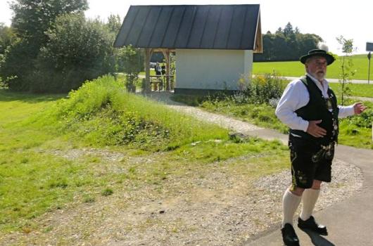 Morgen Andacht: der Ott Michi vor seiner Kapelle Himmelmutter