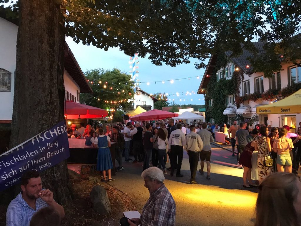 Die Berger Burschen schreiben uns: “Das Café Frühtau hält allerlei Kaffeespezialitäten breit, dazu gibts selbst gebackenen Kuchen. Wer es lieber deftig mag kommt bei den Grillschmankerl vom Metzger Kandler auf seine Kosten. Für ein buntes Rahmenprogramm mit Kinderschminken und Biertraglklettern ist gesorgt. Dieses Jahr dürfen die Gäste auf eine ganz besondere Überraschung gespannt sein, die man sich auf keinen Fall entgehen lassen sollte. Später sorgt unser DJ für ausgelassene Stimmung an der Prosecco Bar und an der Longdrink Bar. Die Burschenschaft Berg freut sich auf ein schönes Fest mit zahlreichen Gästen. Das Berger Dorffest findet bei jedem Wetter statt.“