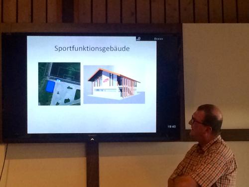 Zentrales Thema des Berichts von 1. Vorsitzenden Andi Hlavaty war die mögliche Errichtung eines Sportfunktionsgebäudes auf dem Gelände von Berg Nord. Ein Bauraum von 10 x 15 m ist vorhanden. Ein vorliegender Entwurf sieht Umkleiden und Duschen im Erdgeschoss, ein Büro und einen Gymnastikraum im Obergeschoss vor. Richtig glücklich ist allerdings niemand über das Raumkonzept – schon jetzt ist absehbar, dass das Gebäude zu klein wird – und das bei geschätzten Kosten zwischen 650 und 950 T € ohne Erschließung. Langfristig ist auch ein Umzug vom Lohacker nach Berg Nord nicht auszuschließen – der Pachtvertrag läuft noch bis 2034.