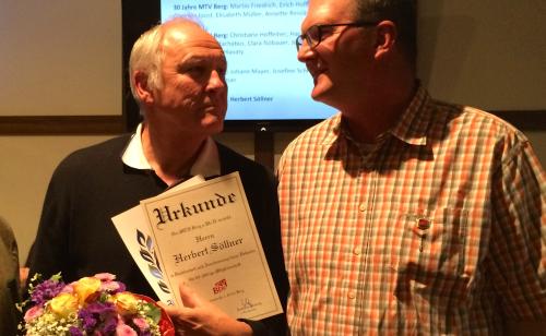 Rekord: Der ehemalige Vereinsvorsitzende Herbert Söllner wurde für seine 60-jährige Mitgliedschaft geehrt.