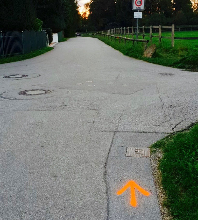 Da geht’s lang: Stil-Streckenfahrt-Markierung am Enzianweg