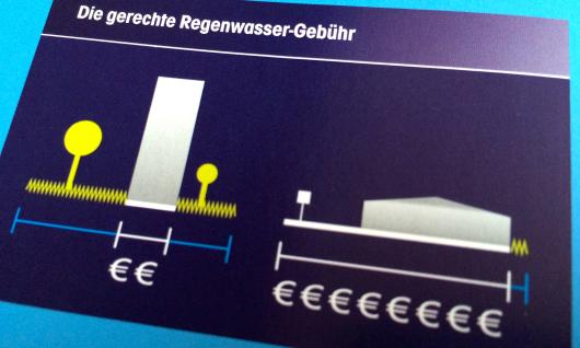 Trotzdem steht jetzt schon fest, dass die neue Gebühr pro versiegeltem qm Grund oder nicht versickertem Dach zusätzlich 0,85€ pro Jahr betragen wird.