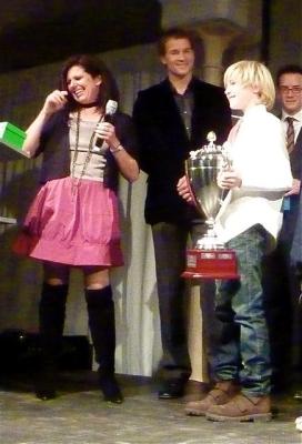 Eifriger Nutzer dieses Platzes ist inzwischen auch der Fußballspieler Jens Lehmann, der mit Jugendleiterin Elke Link den “Newcomer des Jahres” ehrte: Es ist Lenny Bücker, der Torwart der E2-Mannschaft, der zum Sieg seines Teams beim KIM-Cup beitrug, indem er im Finale durch Abschlag selbst das erste Tor schoss.