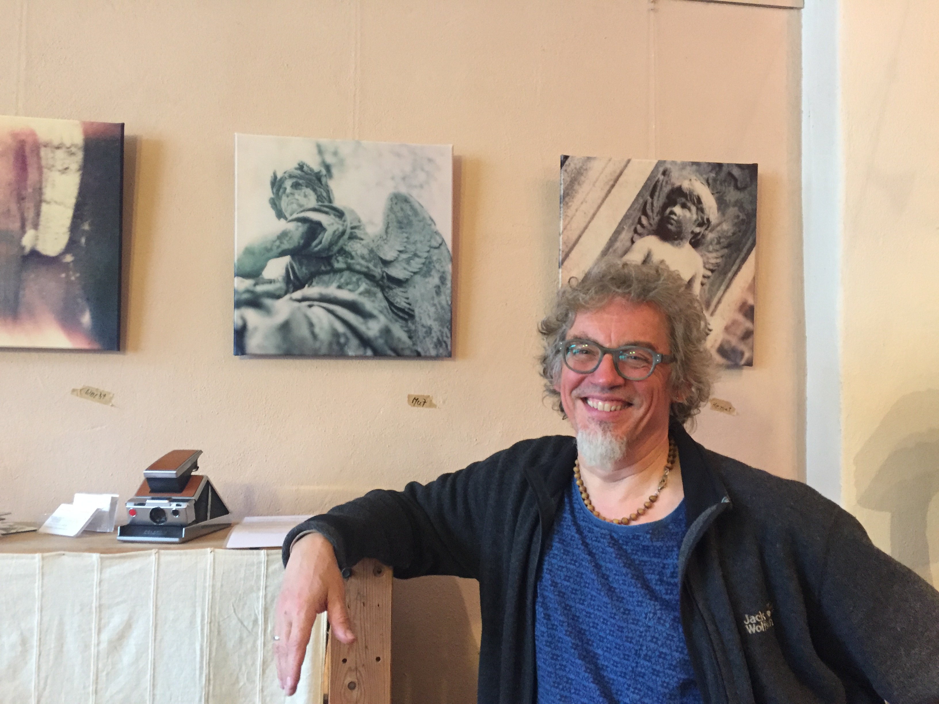 Ihr Gast ist der Fotograf Peter Rossa. Er ist eigentlich Spezialist für Wasseroberflächen, hat sich aber diesmal an ein neues Motiv gewagt: Steinerne Engel, die er auf Leinwand präsentiert.