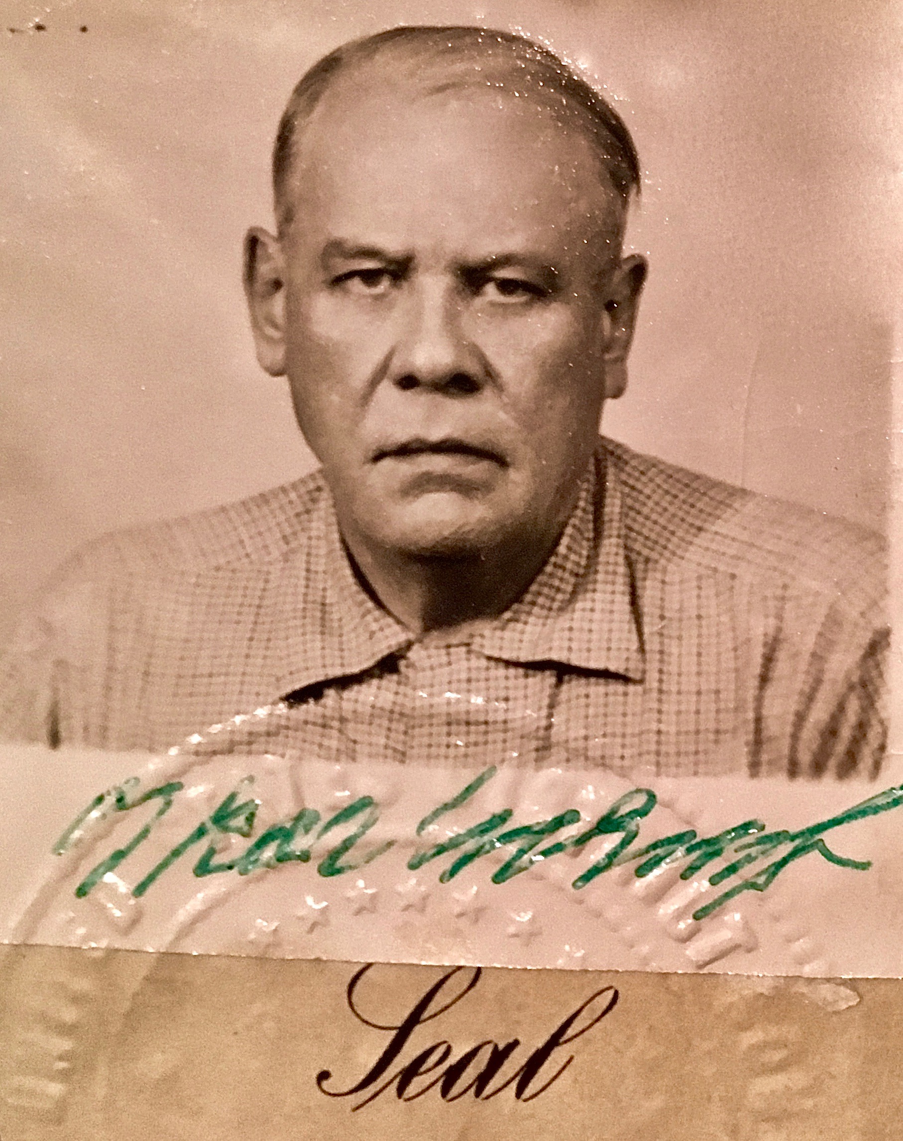 Das Paßphoto von Oskar Maria Grafs amerikanischen Pass (1958), der es ihm nach 25 Jahren Exil erlaubte, erstmals zu einem kurzen Besuch nach Berg zurück zu kehren