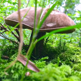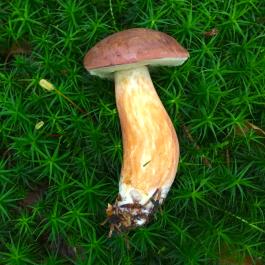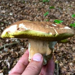 Der ungenießbare Düsterröhrling und ein Handteller großer Steinpilz