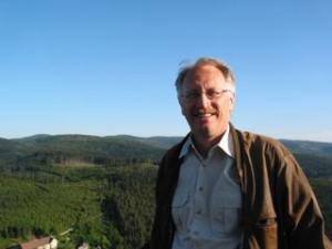 Karl freut sich an den Vogesen. Auf dem Felsen von Dabo.