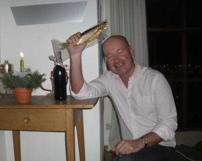 Unsere 200.000sten Leser durften (außer dem immer flüchtigen Sebastian, hallo, wo steckst duuu?) an diesem Wochenende wie versprochen ihr Geschenk entgegennehmen. Um getreu unserem Leitspruch “Global das Denken, lokal die Renken” eine lokale Renke verschenken zu können, mussten wir abwarten, bis die letzten Renken dieses Jahres, die vom Berger Fischer Peter Andrä beim Laichfischen aus dem See geholt wurden, geräuchert waren. Dazu gab es eine Flasche Nebbiolo, der zwar nicht in der Gemeinde angebaut wurde, aber von einem hiesigen Unternehmer importiert wird, und ein von Gemeinderätin Elke Grundmann handgemachtes Adventsgesteck mit bleibendem Wert (nämlich einer gekrönten Quh). Interessant übrigens die Altersverteilung unserer vier Gewinner: Der Jüngste war unter 20, einer feiert nächstes Jahr den 40., einer ist im besten Mannesalter und einer hart an der Seniorengrenze. Alles dabei … Dank und Glückwunsch nochmal!