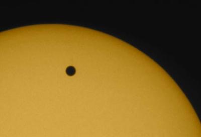 Die Venus wandert heute Nacht – bzw. morgen Früh – zwischen der Erde und der Sonne hindurch und ist von der Erde aus als kleiner schwarzer Fleck auf der Sonnenscheibe zu sehen.