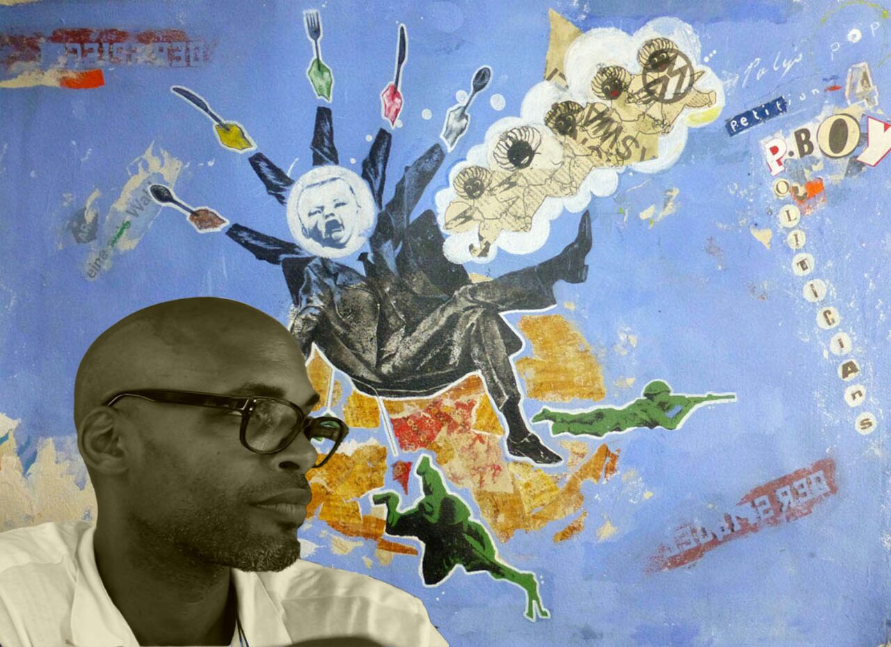 Tre Polk, Künstler und Kaminkehrer (hier vor seinem Bild “Polys tic”)