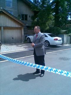 Landrat Karl Roth erwies sich bei seiner Ansprache als wahrer Profi: die Schere hatte er in der Brusttasche stecken