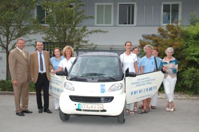2) Und Patrick Keller (2. v. links im Bild), Geschäftsführer des Keller Verlags, setzte die wohltätige Tradition seines Großvaters und Firmengründers Josef Keller fort und rüstete den Verein mit einem Smart aus dem Firmenbestand des Verlags aus – das Fahrzeug ist zwar ebenfalls schon neun Jahre alt, aber mit nur 35.000 km noch topfit.