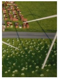 Es fehlt aber komplett die von den Flügeln intermittiernd und dies bedeutet erst die hohe Belastung für Mensch und Tier, erzeugte Beschattung mit einem Kreisdurchmesser von ca. 120m, in Form einer Ellipse am Boden.