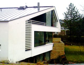 Moderne Kunst auch vor dem Fenster: gelungene Satteldacharchitektur von Ledas Nachbarn in Kempfenhausen