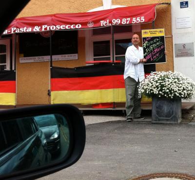 Heute geht es los: Um 18 Uhr spielt unsere Fußballnationalmannschaft gegen Kanada. Die Fußball-WM in Deutschland beginnt. Doch wo sind hier die Wimpel, die Fahnen, die Chöre, die Open-Air-Veranstaltungen, die Großleinwände? Eindeutig woanders. Einer jedoch ist in Berg immer bemüht, wenn es um Frauen geht – denn natürlich sprechen wir hier von Frauenfußball – uns Dada hat zwei Großfernseher aufgestellt und überträgt alle Spiele in seiner guten Stube live. Ein Frauenversteher? Nein, der Mann versteht halt was von Raumdeckung!