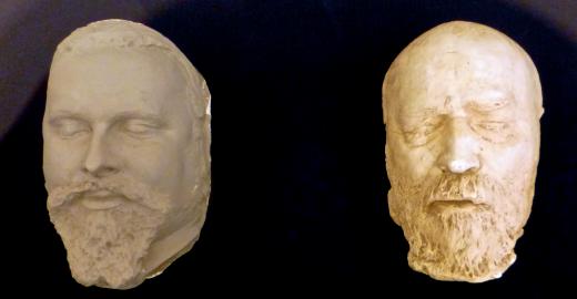 Die Totenmasken von König Ludwig (links) und Dr. Gudden (samt der Beule über dem rechten Auge)