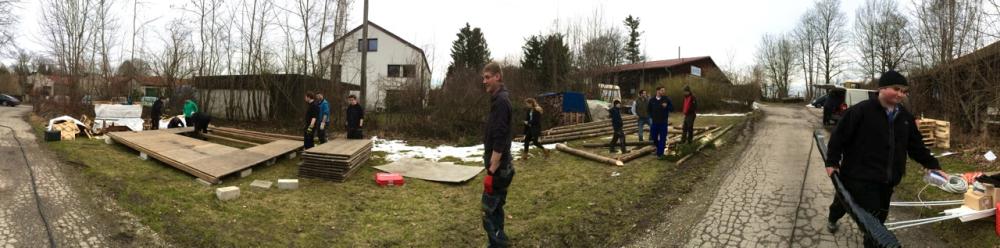 Am Schatzlanger wird gerade die Wachhütte der Berger Burschen aufgebaut (Panoramaphoto zum Vergrößern anklicken)