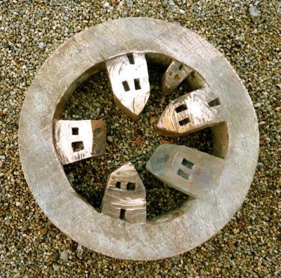 Währenddessen hat der Ex-Schreiner und Jetzt-Künstler Hans Panschar in Allmannshausen seine erste Metallskulptur verfertigt … auch die ist ihm auffallend kreisverkehrsförmig geraten:
