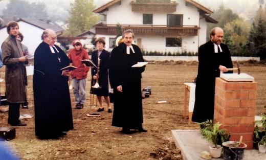 Lange Jahrzehnte fanden die Gläubigen später Unterschlupf in St. Johannis in Berg oder St. Valentin in Allmannshausen. Schon 1960 hatte die Kirche zwar das Grundstück am Fischacker erworben, aber es bedurfte erst energischer Proteste aus Berg bei der Landeskirche, bis man sich entschied, hier ein Gemeindehaus zu errichten. 1987 wurde der Grundstein gelegt …
